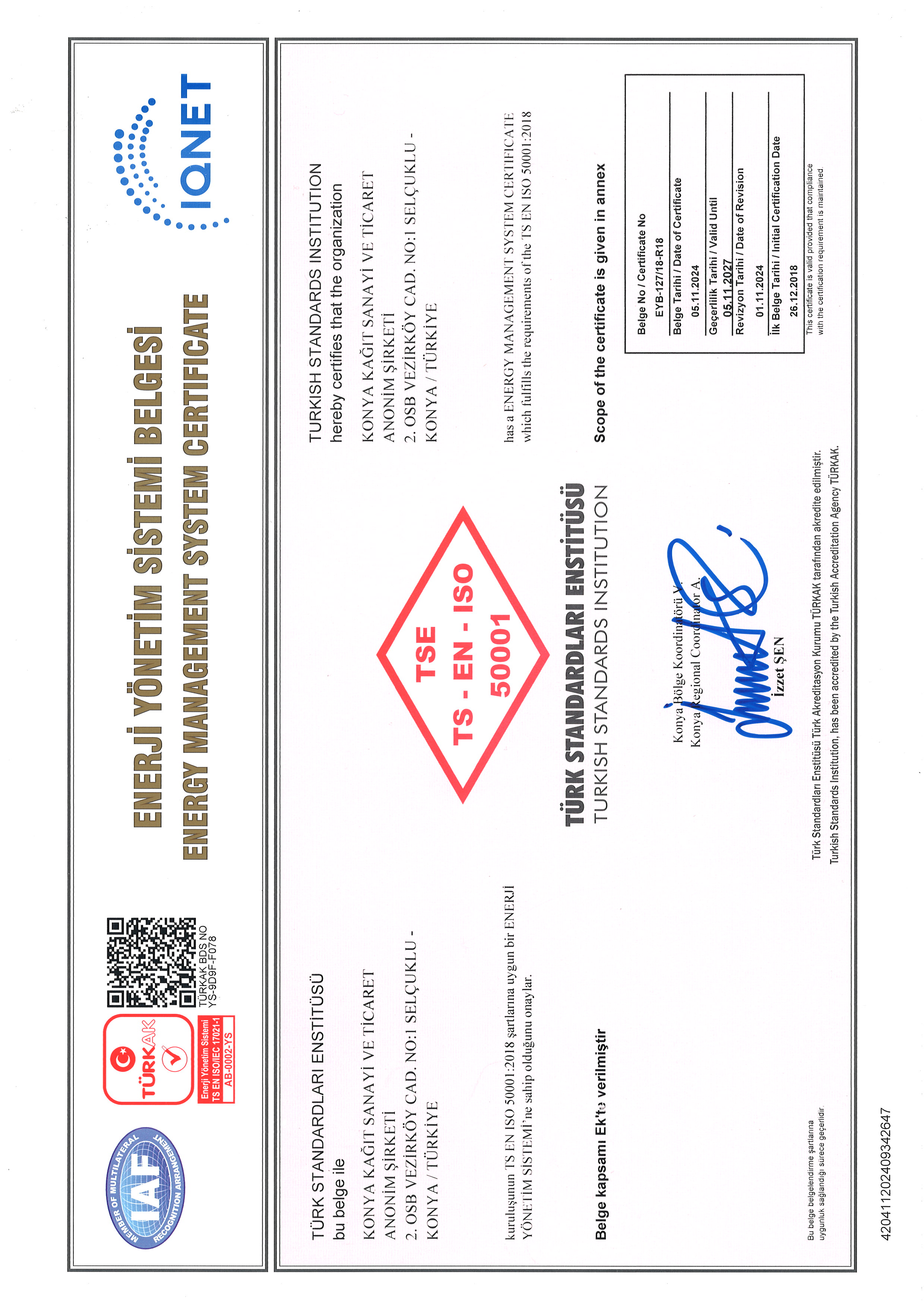 TS EN ISO 50001 : 2018 ENERJİ YÖNETİM SİSTEMİ