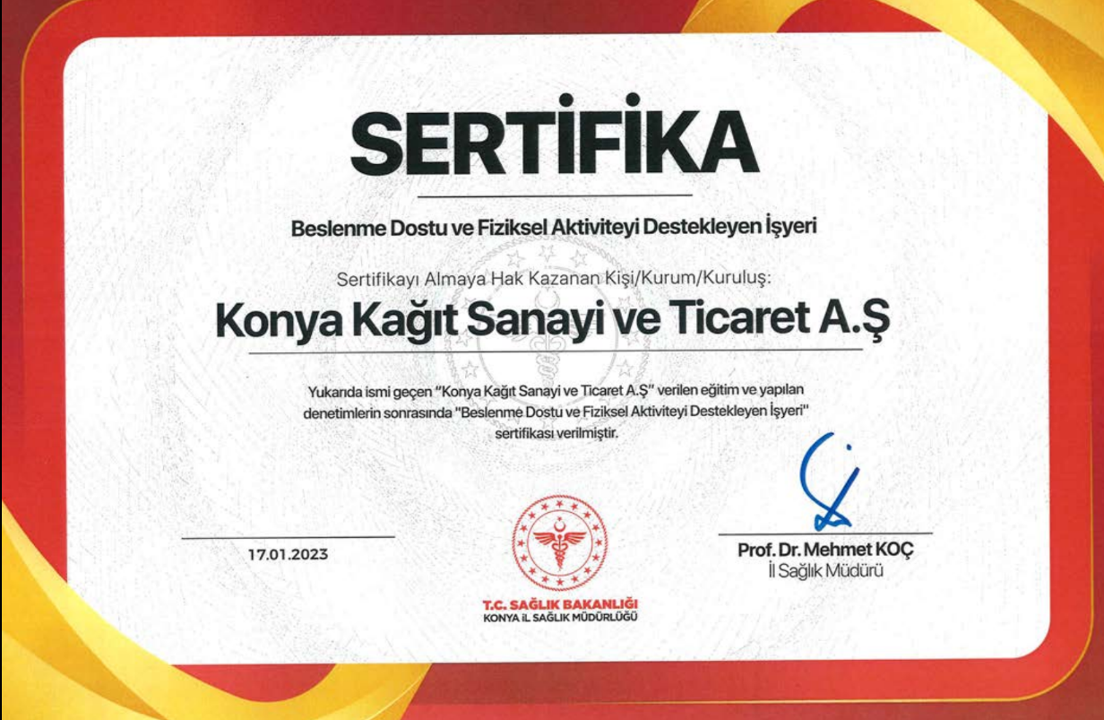 Beslenme Dostu ve Fiziksel Aktiviteyi Destekleyen İşyeri Sertifikası