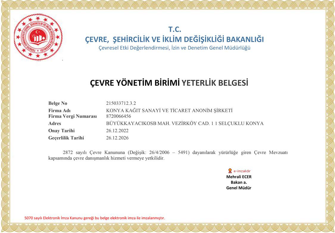 ÇEVRE YÖNETİM BİRİMİ YETERLİK BELGESİ