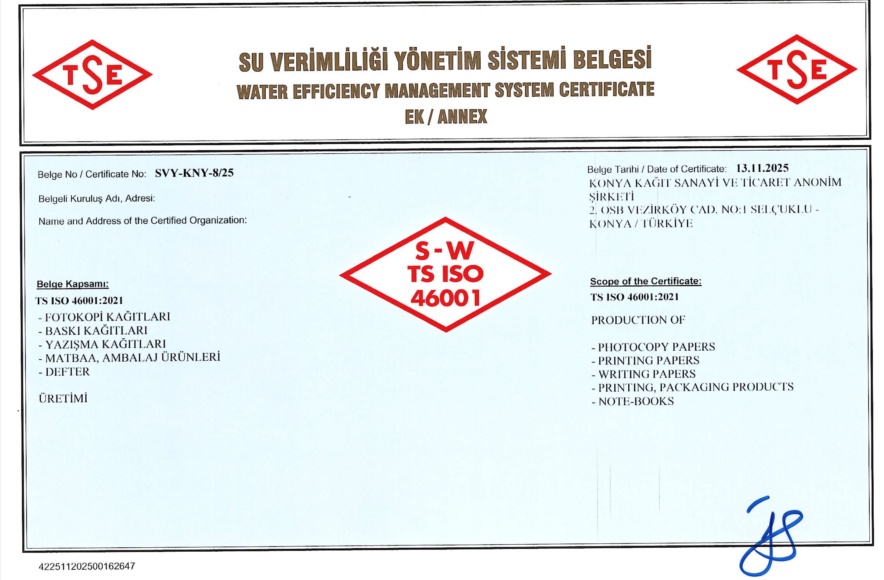 TS ISO 46001-Su Verimliliği Yönetim Sistem Belgesi Ek
