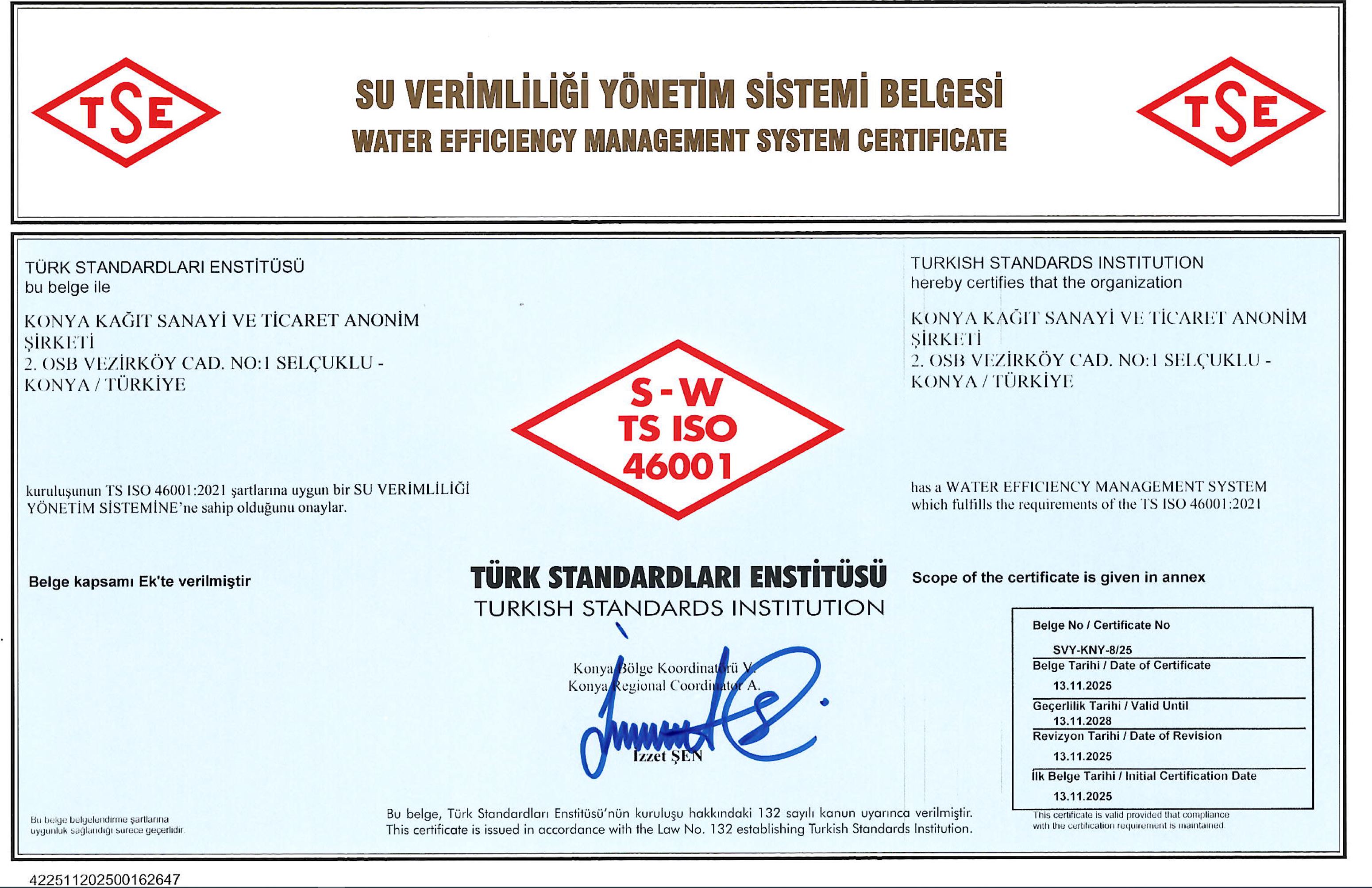TS ISO 46001-Su Verimliliği Yönetim Sistem Belgesi